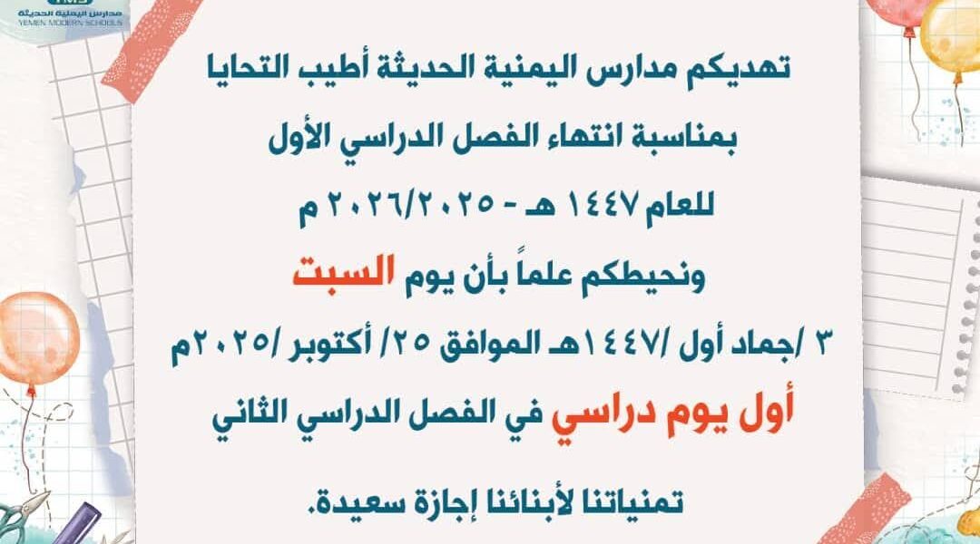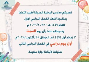 إحاطة لأبنائنا الطلاب بأن يوم السبت ٢٥-أكتوبر -٢٠٢٥م أول يوم دراسي في الفصل الثاني